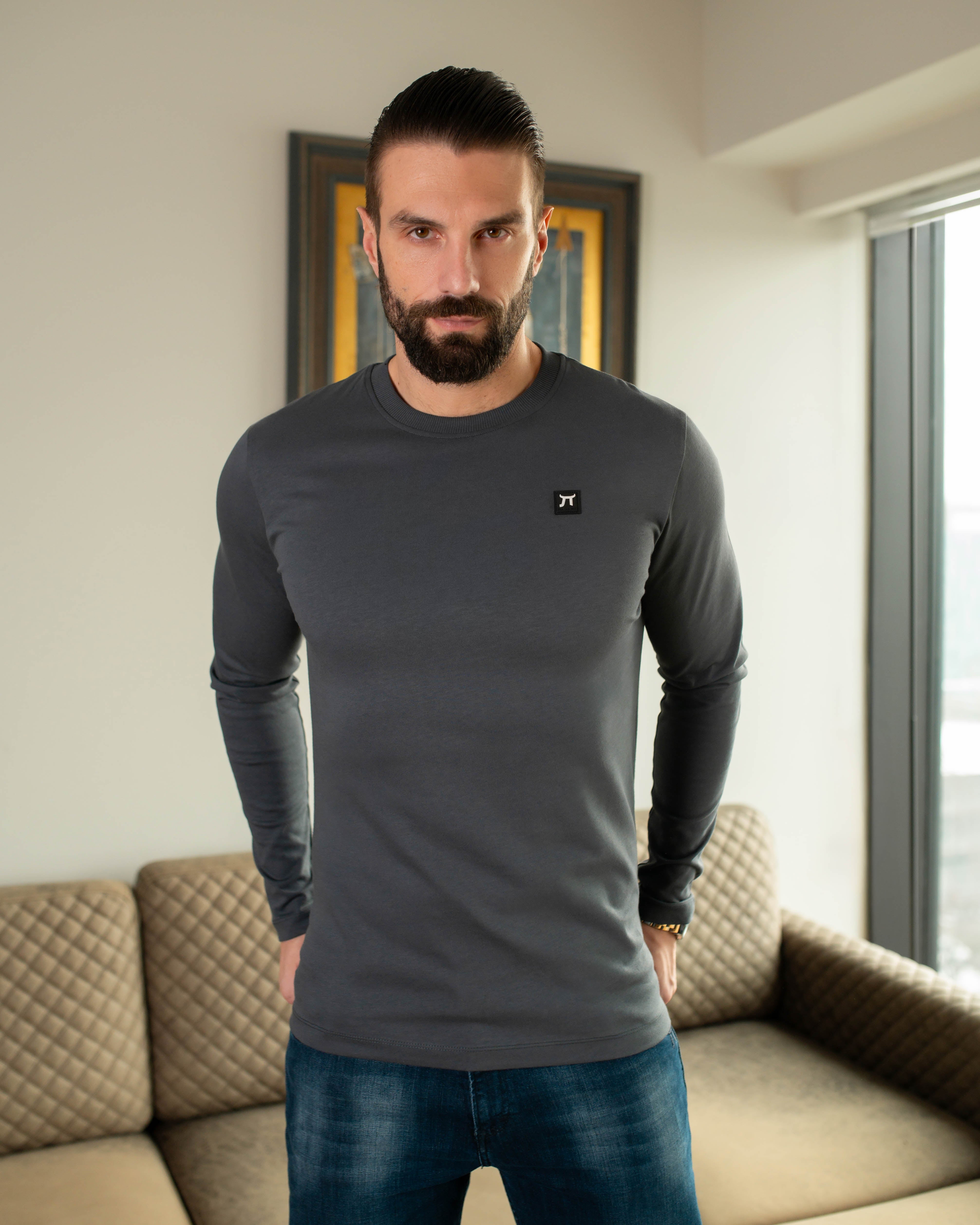 Pravili smo ih od češljanog pamuka i 5% likre. Blago sužena u struku, s dovoljno prostora da pokrije stomak. Dodali smo mekanu ranflu na dnu rukava koja ne steže ruku, već samo drži oblik rukava.
